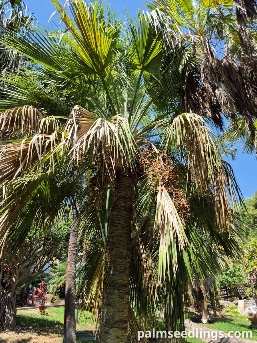 This palm is endemic to Guadalupe Island, located off the Pacific coast of Baja California, Mexico, where it grows primarily in rocky canyons and arid slopes on the northern and central parts of the island. It thrives in full sun, wind-exposed habitats, and well drained soils. Despite originating from a dry environment, it adapts well to a range of conditions in mild, frost free climates and is widely cultivated for its neat, symmetrical appearance and tolerance to wind and drought.