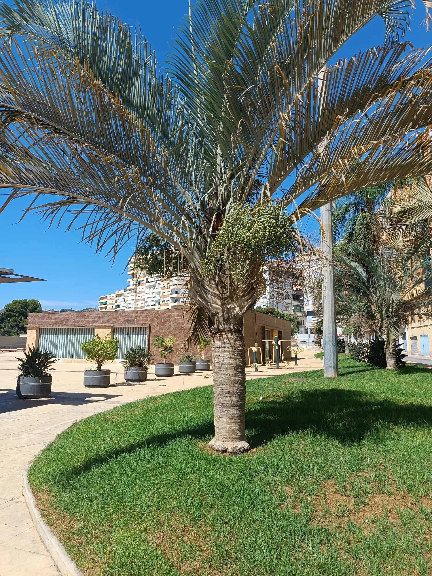 Native to Madagascar, the triangle palm thrives in sandy, well-drained soils and full sun but can tolerate partial shade. It is highly drought-tolerant and moderately resistant to wind, making it a durable choice for exposed landscapes. Dypsis decaryi can survive temperatures as low as -4,5°C (24°F).