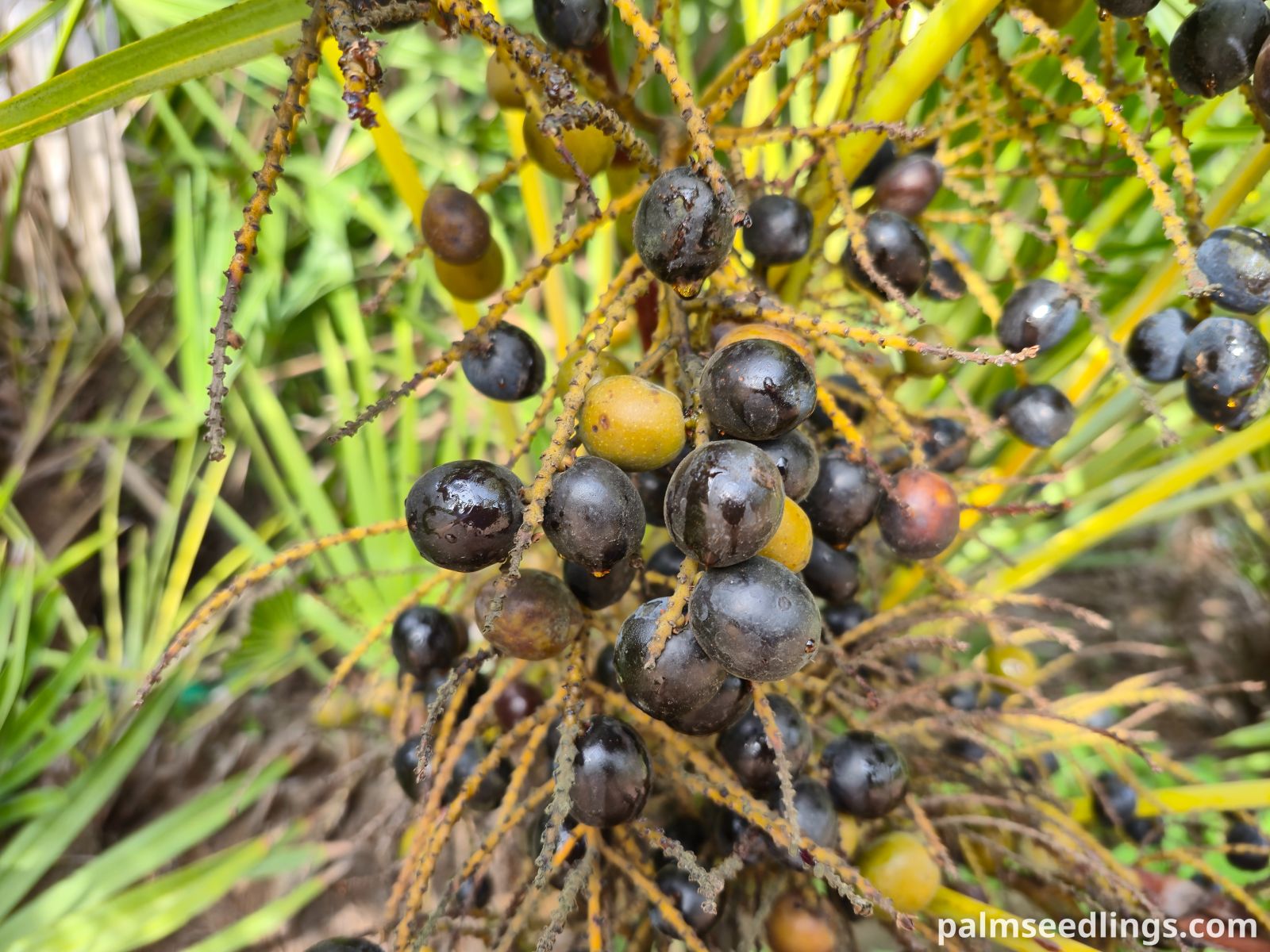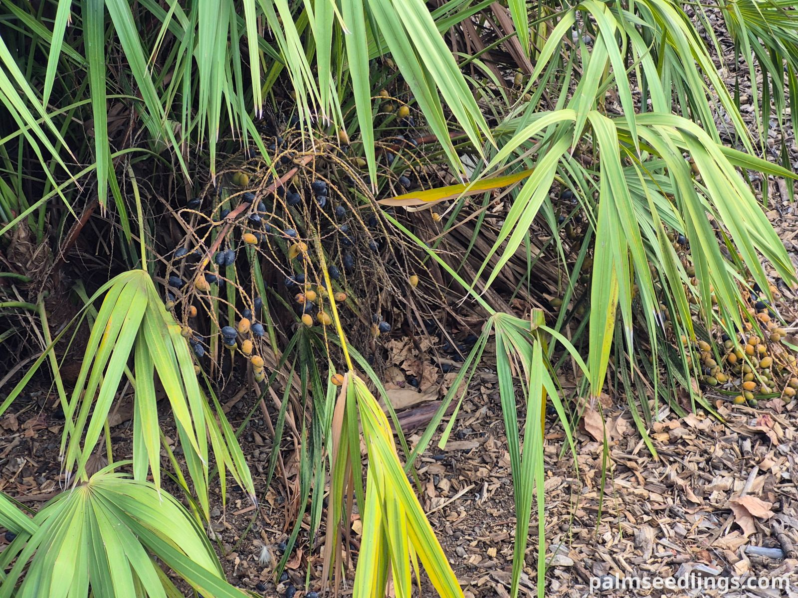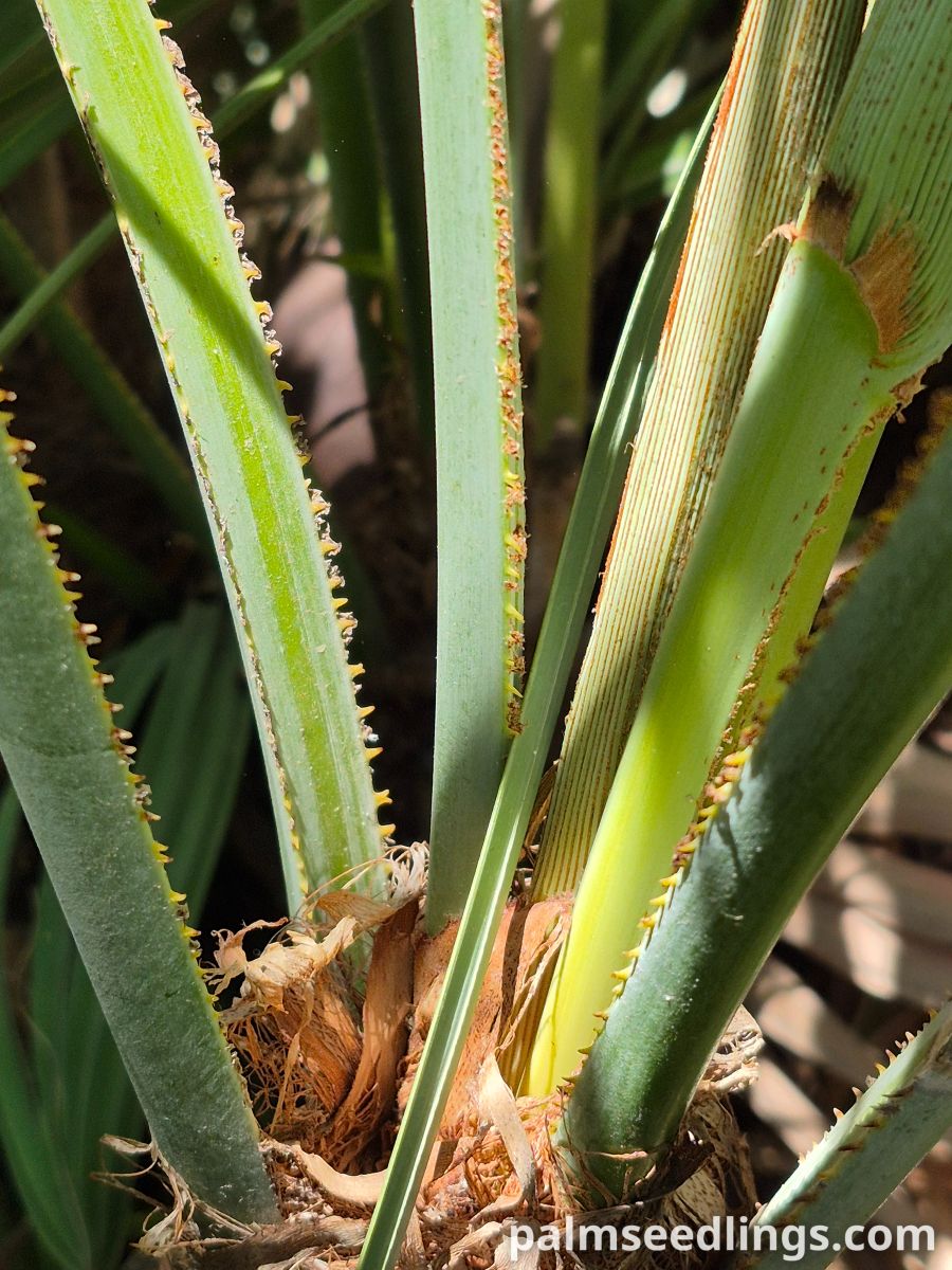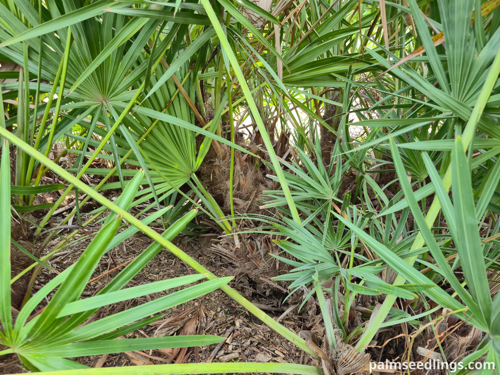 Serenoa repens is a low, clumping fan palm that typically forms dense thickets from creeping, often subterranean stems (rhizomatous growth). Above-ground stems are short, though older plants can develop short to occasionally elongate trunks. The leaves are palmate, 0.6-1.2 m (2-4 ft) across, borne on strongly armed petioles with serrated margins that give the species its common name, “saw palmetto.” Flowering occurs on branched inflorescences, followed by ovoid drupes that ripen from green to black and are harvested for their phytochemical content, widely used in herbal medicine.